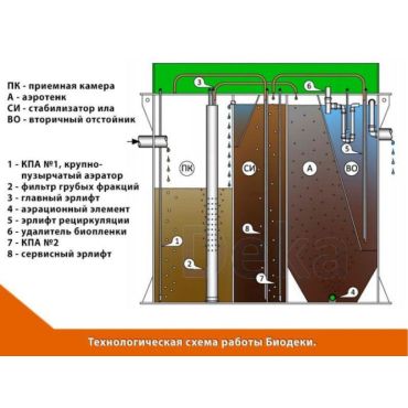 • Простота обслуживания: не требует ассенизаторской машины; обслуживание производится с помощью встроенного эрлифта
