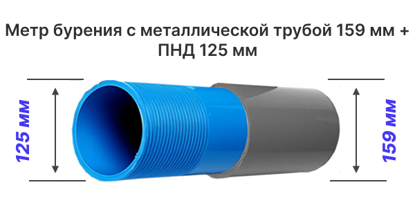 Бурение скважин с трубой Металл на резьбе 159 мм + ПНД 125 мм