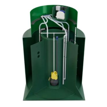 • Компрессорный блок внутри септика. Он изолирован от влаги, но 100% защита электрики при аварийных ситуациях достигается только вынесением блока электрики за пределы корпуса станции. В случае с самотечным отводом воды выносить электрику не имеет смысла.