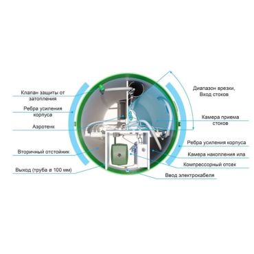 - Высокая степень очистки: до 98% благодаря многоступенчатой биологической очистке